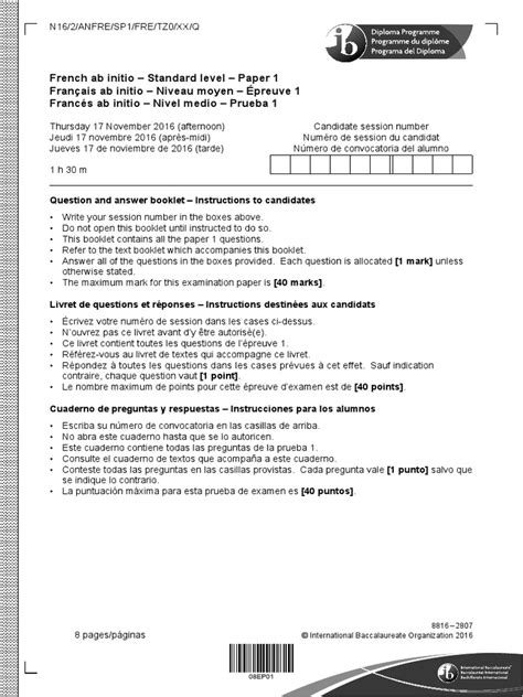 Download IB FRENCH SL PAPER 1 2012 Reader Open Library